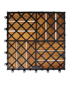 Descrizione: Piastrella 30x30 cm in legno naturale di acacia con base in polipropilene riciclato, sistema a incastro per posa rapida su superfici rigide. Ideale per pavimentazioni esterne.