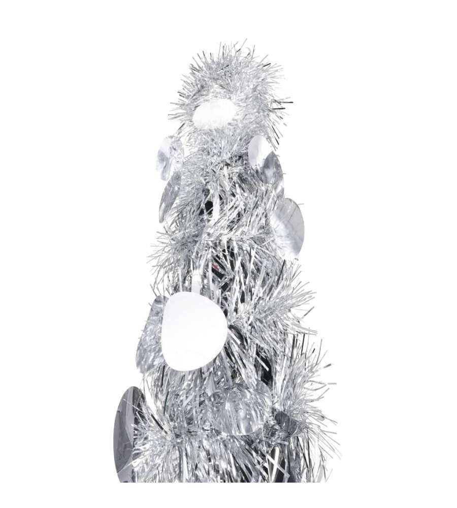 Colore: Argento Materiale: PET Altezza totale: 150 cm Diametro albero: 33 cm Si apre facilmente in pochi secondi Adatto per essere utilizzato sia all'esterno che all'interno Assemblaggio richiesto: Sì