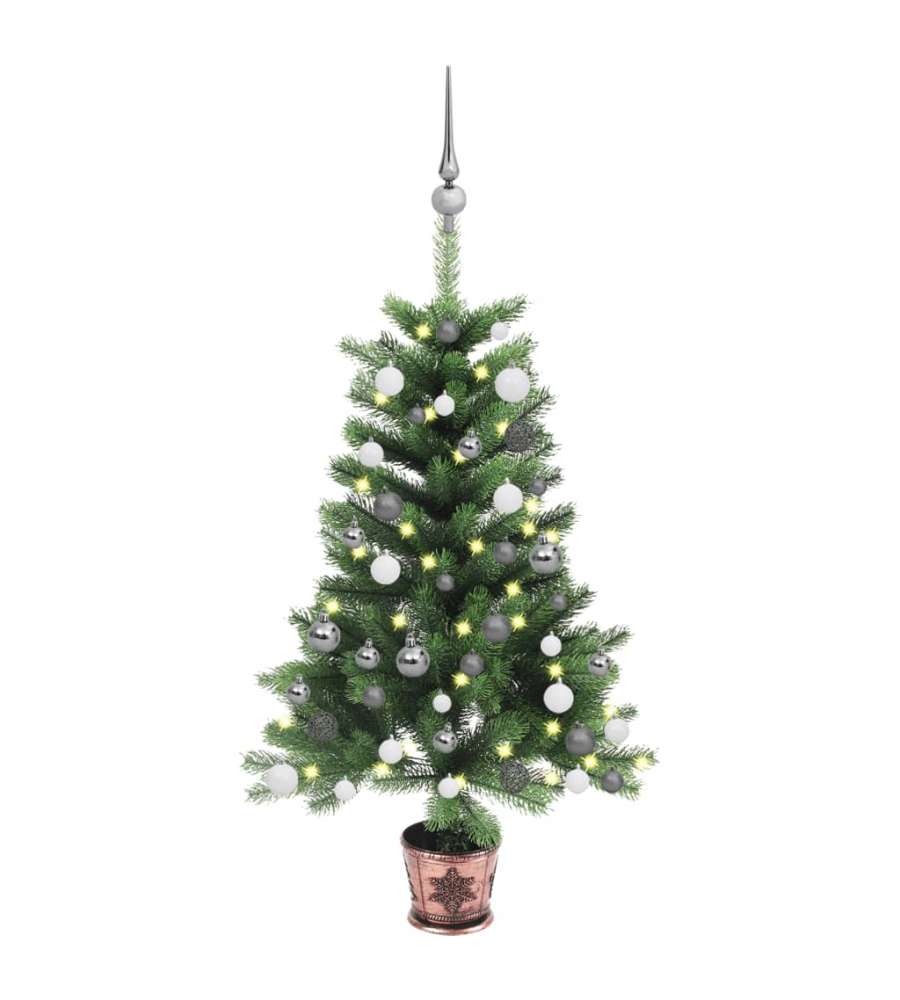 Colore albero: Verde Colore delle palline: bianco lucido, bianco glitter, grigio lucido e grigio glitter Materiale: PE (Polietilene) + plastica Altezza albero: 90 cm Diametro massimo albero: 51 cmAltro 1: