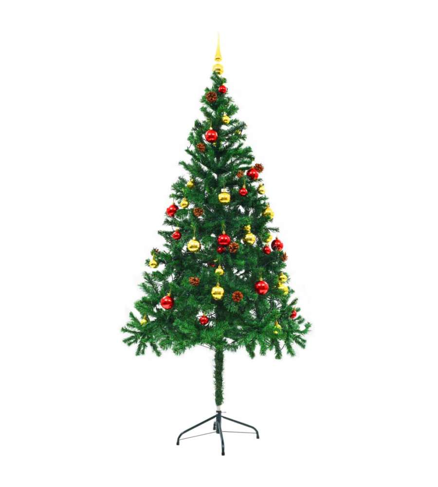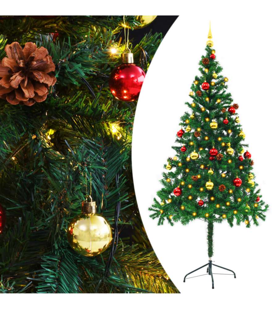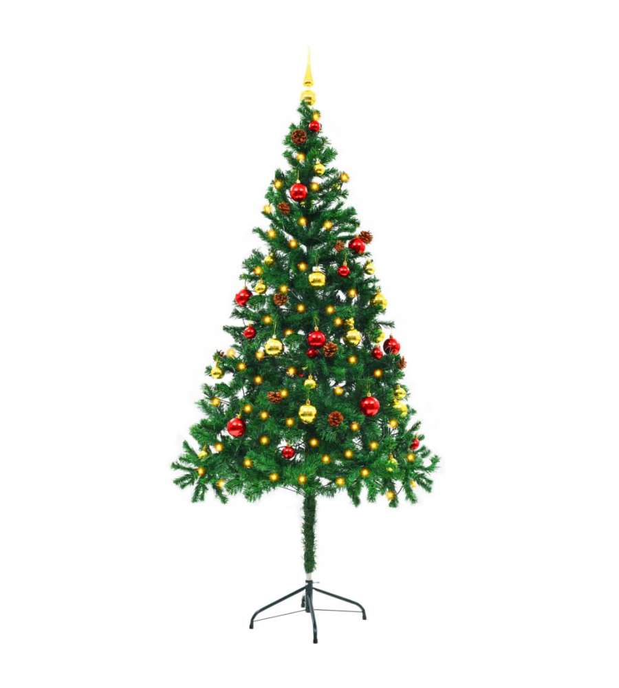 Incluso: 1 Albero di Natale con 200 LED 1 Cima per albero oro 20 cm 30 Palline da 4 cm (15 oro e 15 rosse) 30 Palline da 6 cm (15 oro e 15 rosse) 20 PigneAltro 1: