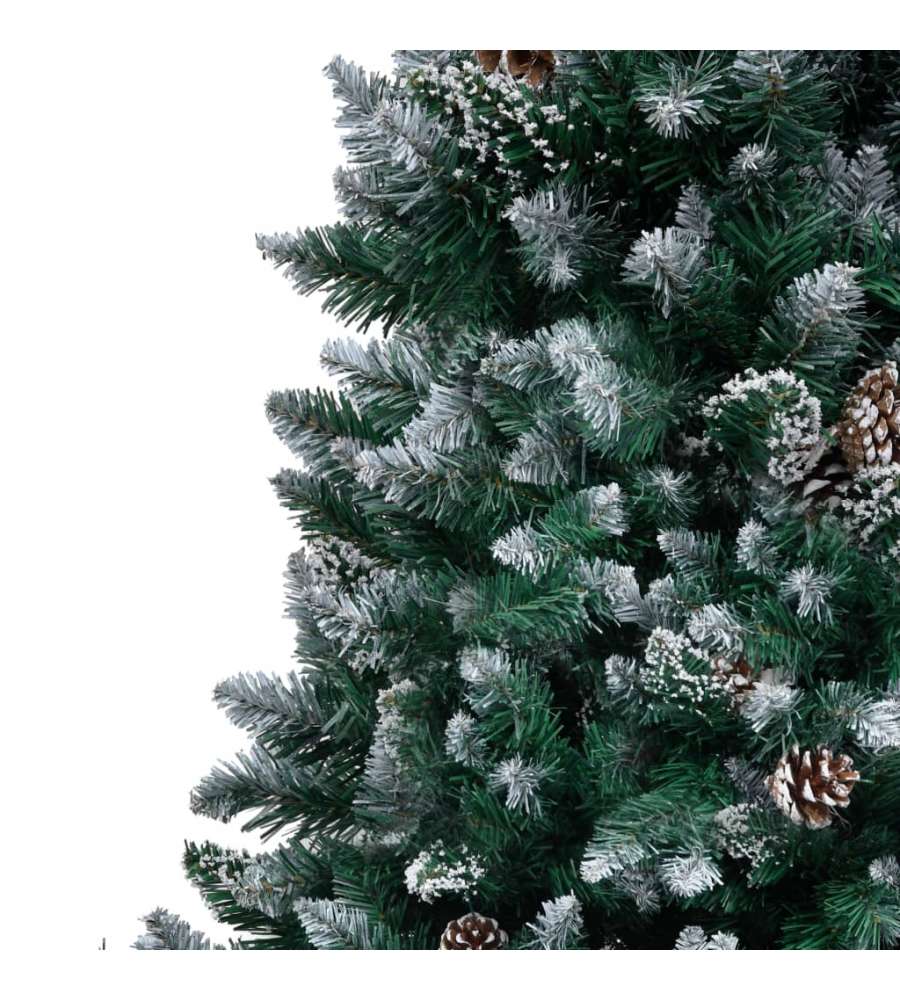 Colore: Verde e bianco Materiale: PVC, acciaio Altezza dell'albero: 240 cm Diam dell'albero: 130 cm Con 2021 punte Con neve bianca sulle punte Decorato con pigne Assemblaggio richiesto: Sì Incluso: 1 Albero di Natale 1 BaseAltro 1: