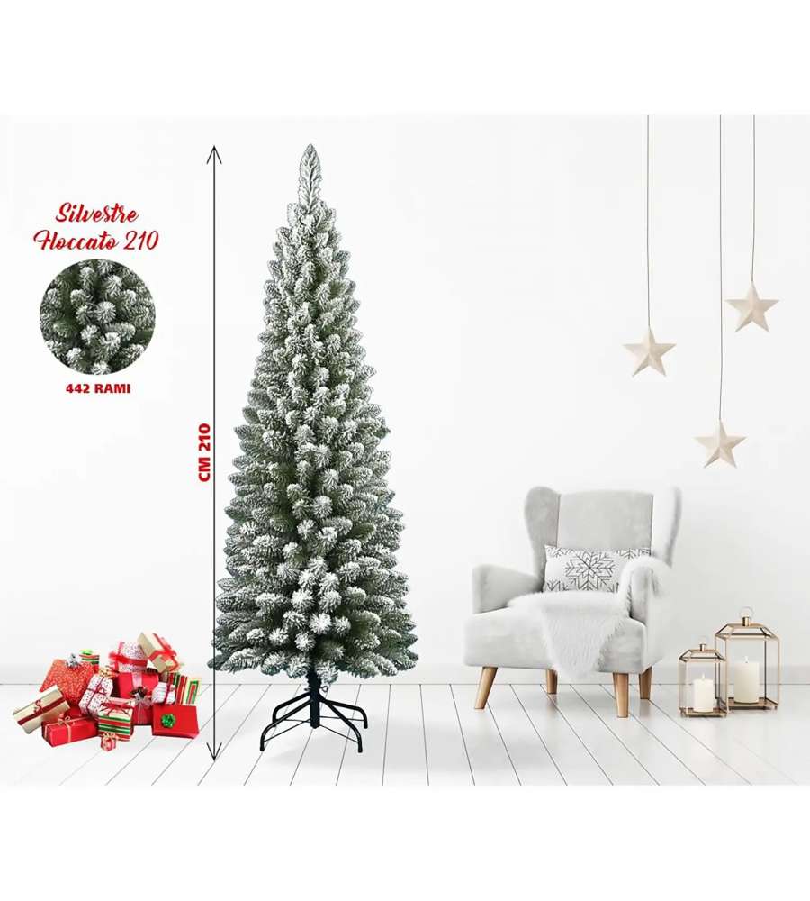 Descrizione: Albero di Natale Slim Silvestre 210 cm, con 442 rami floccati per un effetto innevato realistico. Salvaspazio e facile da montare, perfetto per ogni angolo della tua casa. Creare magia festiva non è mai stato così semplice!