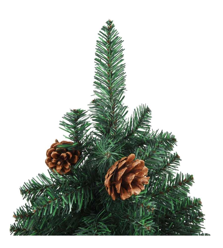 Colore: Verde Materiale: PVC, vero legno massello di pino, acciaio verniciato a polvere nero Altezza totale: 180 cm Diam albero: 72 cm Con 375 punte Decorato con 39 pigne Adatto per essere utilizzato sia all'esterno che all'internoAltro 5: