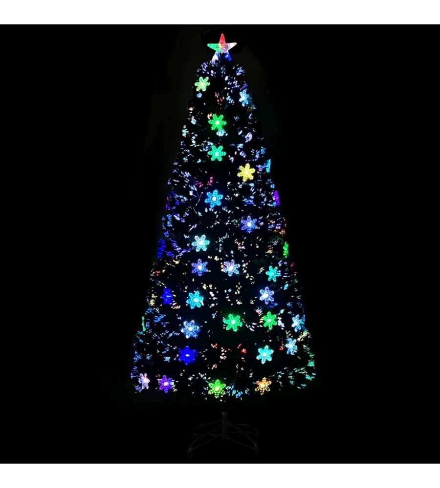 Con 170 rami Con 36 fiocchi di neve a LED Sorgente luminosa: Fibra ottica e LED Luci a 5 colori I diversi colori cambiano automaticamente Con una luce a forma di stella in alto La consegna include: 1 Albero di Natale 1 Supporto