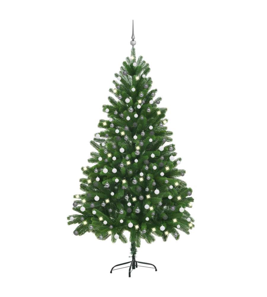 Questo albero realistico ha rami in PE a forma di ago, realizzati mediante stampaggio a iniezione. ? leggero, resistente agli agenti atmosferici e durevole. Questo grazioso albero di Natale ? resistente all'acqua. I rami possono essere disposti in qualsiasi forma. Questo albero di Natale pu? essere utilizzato ogni anno, il che lo rende una scelta molto economica rispetto ad un albero vero. Inoltre, l'albero ha un supporto in acciaio per stabilit?. Dotato di luci a LED ad alta efficienza energetica, si illumina magnificamente e crea un'accogliente atmosfera natalizia. Inoltre, decorato con il bel puntale e le palline, questo albero di Natale attirer? l'attenzione nella vostra casa.