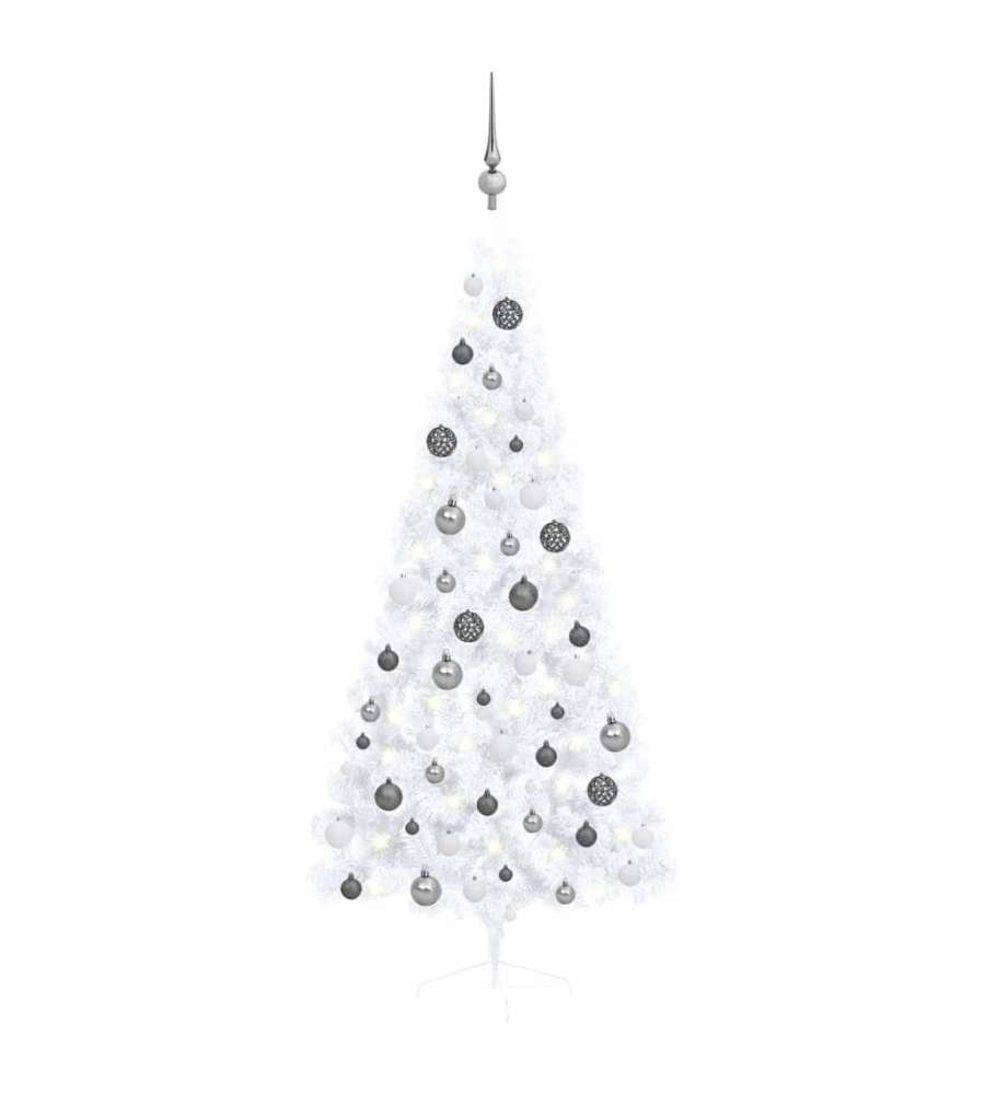 Questo bellissimo albero di Natale, realizzato in PVC, ? molto realistico nella forma e nell'aspetto. I piedini in acciaio ne aumentano la stabilit?. Questo albero artificiale pu? essere posizionato contro il muro per risparmiare pi? spazio. L'albero di Natale pu? essere riutilizzato ogni anno, il che lo rende una scelta molto economica rispetto ad un albero vero. Dotato di luci a LED ad alta efficienza energetica, si illumina magnificamente e crea un'accogliente atmosfera natalizia. Decorato con il bel puntale e le palline, questo albero di Natale attirer? l'attenzione nella vostra casa.