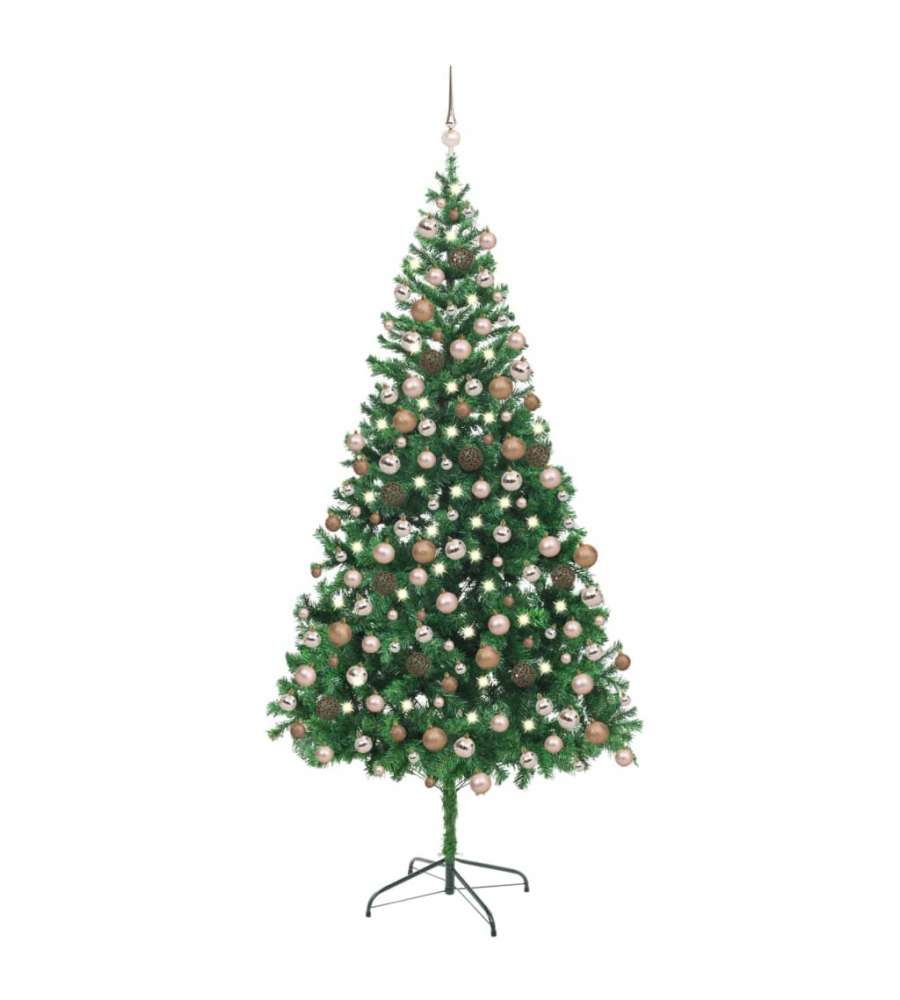 Colore dell'albero: Verde Colore delle palline: oro rosato brillante, oro rosato opaco e oro rosato glitterato Materiale: PVC, acciaio, plastica Altezza totale: 210 cm Diametro supporto: 45 cm Lunghezza della stringa LED: 30 mAltro 1: