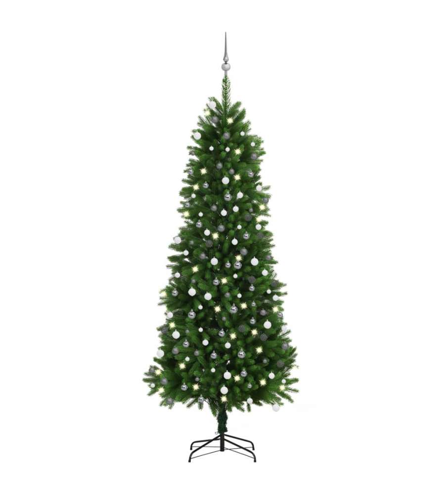 Questo albero realistico ha rami in PE a forma di ago, realizzati mediante stampaggio a iniezione. ? leggero, resistente agli agenti atmosferici e durevole. Questo grazioso albero di Natale ? resistente all'acqua. I rami possono essere disposti in qualsiasi forma. Questo albero di Natale pu? essere utilizzato ogni anno, il che lo rende una scelta molto economica rispetto ad un albero vero. Inoltre, l'albero ha un supporto in acciaio per stabilit?. Dotato di luci a LED ad alta efficienza energetica, si illumina magnificamente e crea un'accogliente atmosfera natalizia. Inoltre, decorato con il bel puntale e le palline, questo albero di Natale attirer? l'attenzione nella vostra casa.