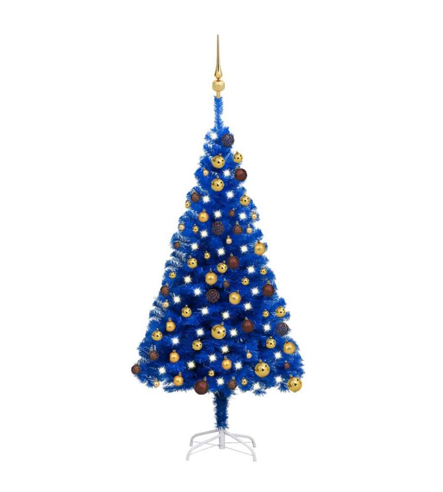 Colore dell'albero: Blu Colore delle palline: oro lucido, oro opaco e bronzo Materiale: PVC, acciaio, plastica Altezza totale: 120 cm Diametro dell'albero: 65 cm Lunghezza della stringa LED: 15 mAltro 1: