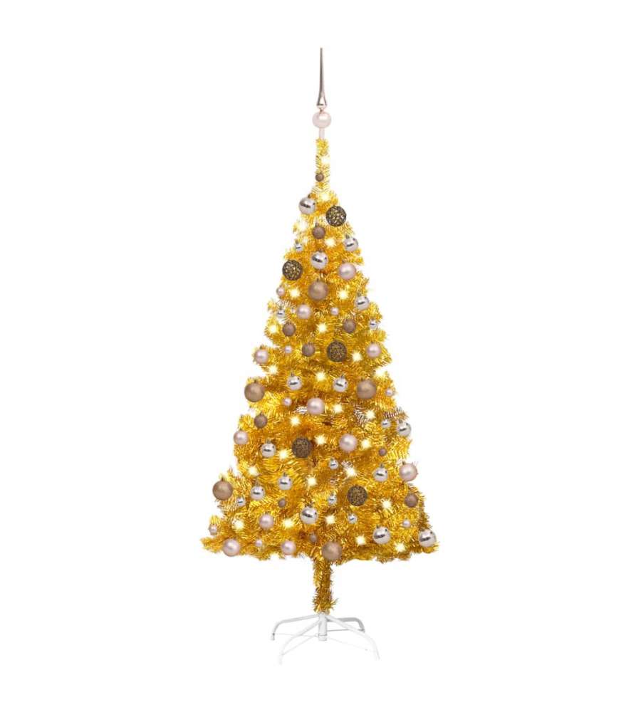 Colore dell'albero: Oro Colore delle palline: oro rosato brillante, oro rosato opaco e oro rosato glitterato Materiale: PET, acciaio, plastica Altezza totale: 120 cm Diametro dell'albero: 65 cm Lunghezza della stringa LED: 15 mAltro 1: