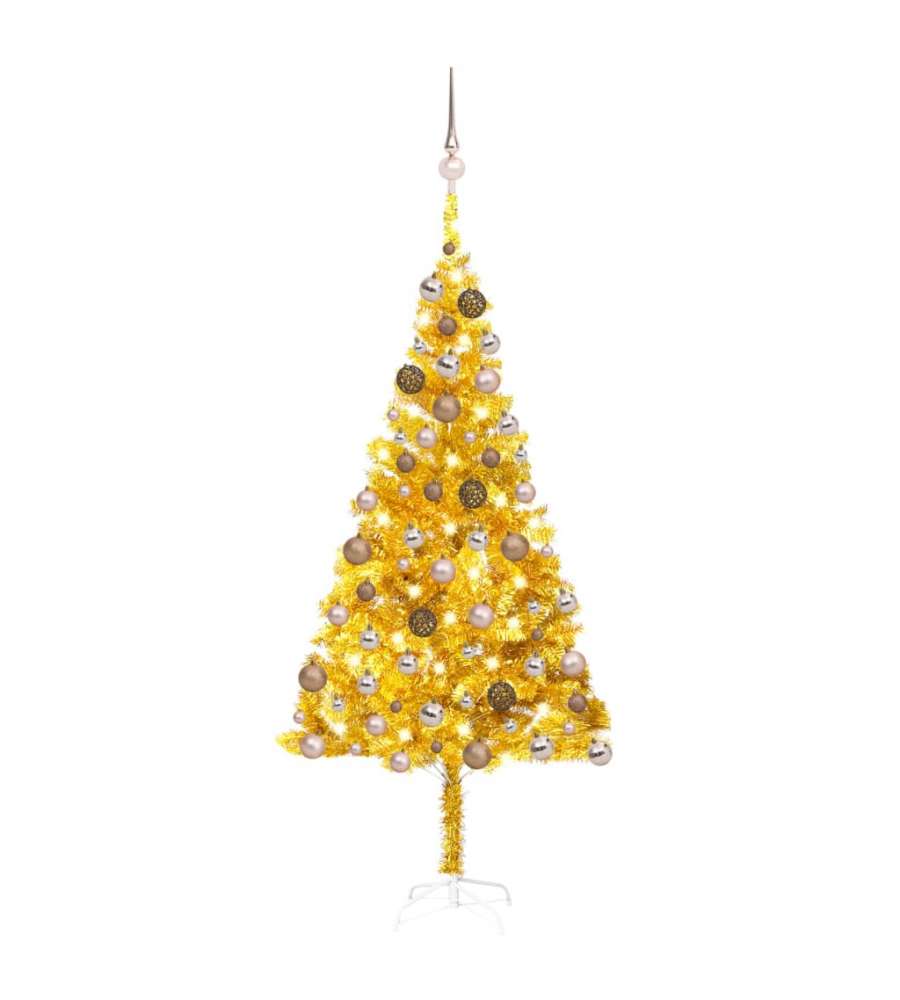 Colore dell'albero: Oro Colore delle palline: oro rosato brillante, oro rosato opaco e oro rosato glitterato Materiale: PET, acciaio, plastica Altezza totale: 180 cm Diametro dell'albero: 93 cm Lunghezza della stringa LED: 15 mAltro 1: