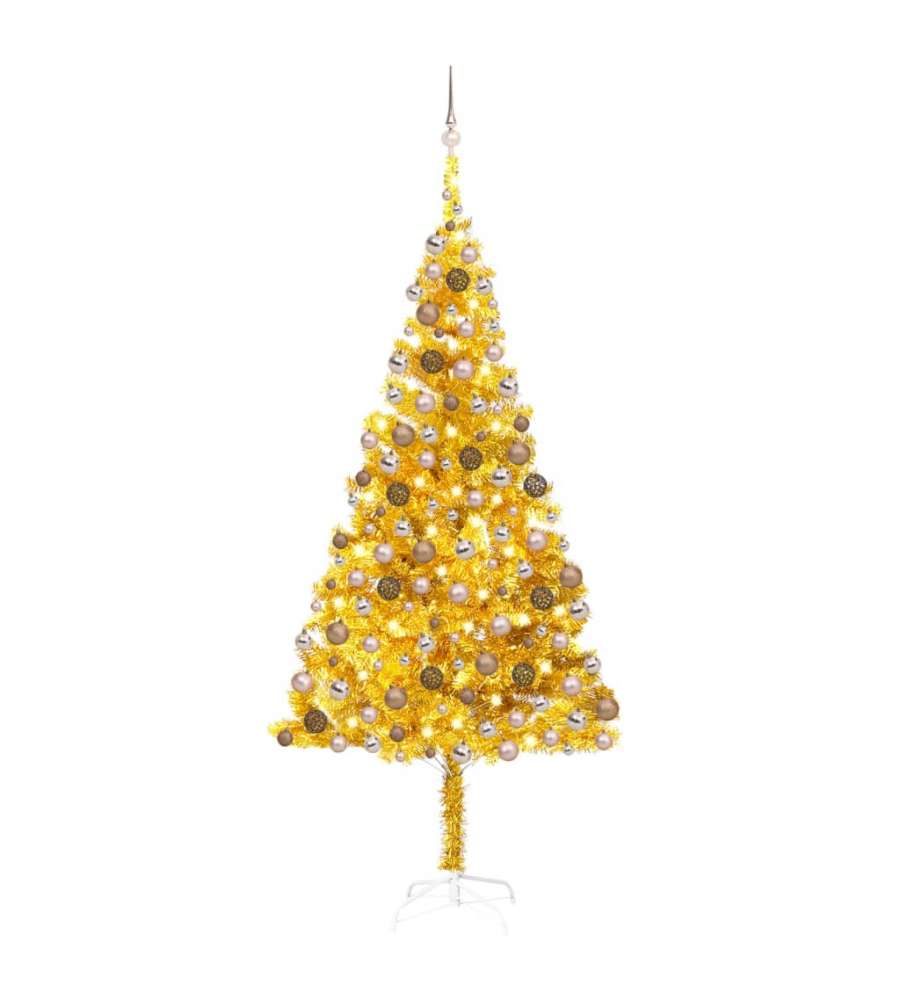 Colore dell'albero: Oro Colore delle palline: oro rosato brillante, oro rosato opaco e oro rosato glitterato Materiale: PET, acciaio, plastica Altezza totale: 240 cm Diametro dell'albero: 120 cm Lunghezza della stringa LED: 30 mAltro 6: