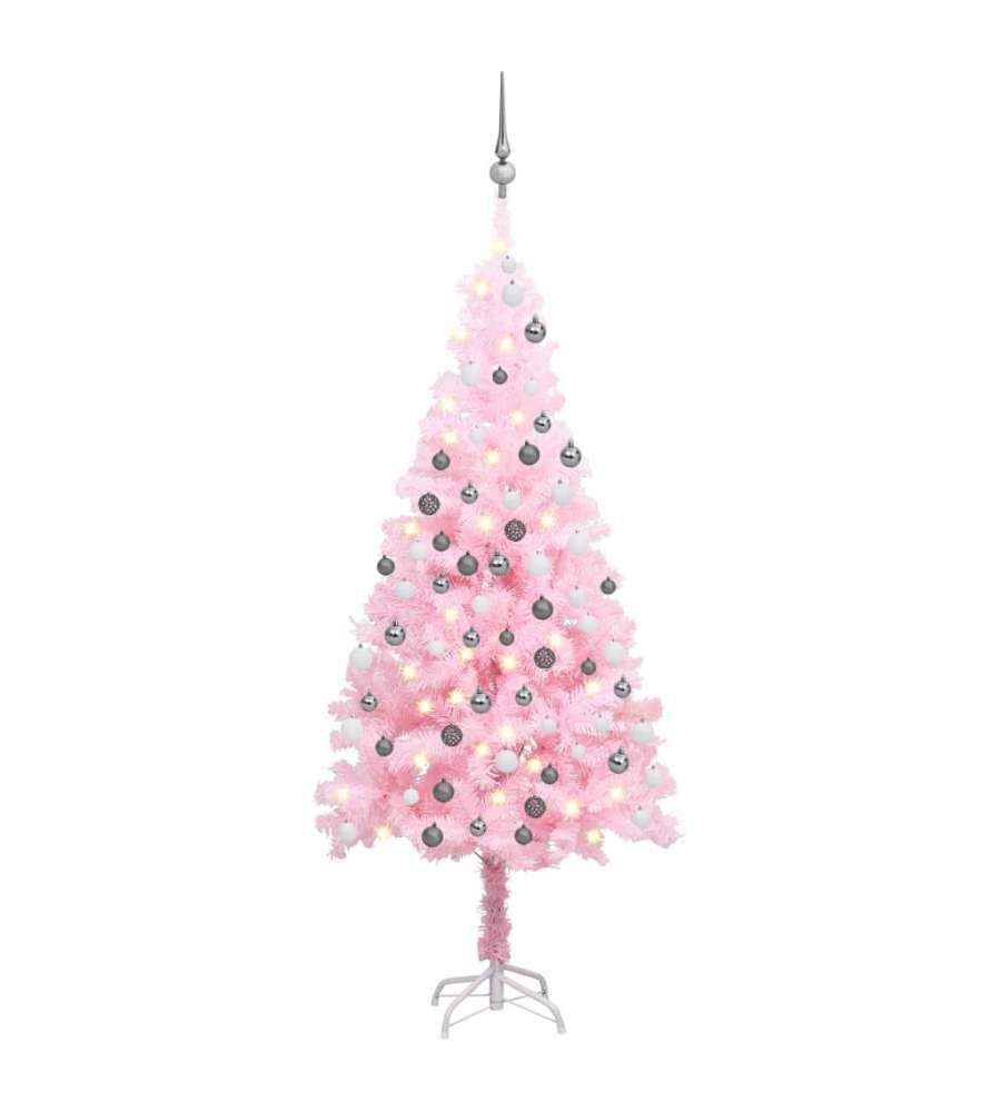 Colore dell'albero: Rosa Colore delle palline: bianco lucido, bianco glitter, grigio lucido e grigio glitter Materiale: PVC, acciaio, plastica Altezza totale: 180 cm Diametro dell'albero: 93 cm Lunghezza della stringa LED: 15 mAltro 1: