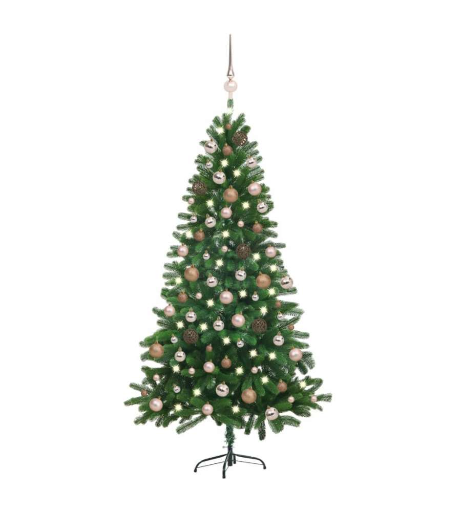 Questo albero realistico ha rami in PE a forma di ago, realizzati mediante stampaggio a iniezione. ? leggero, resistente agli agenti atmosferici e durevole. Questo grazioso albero di Natale ? resistente all'acqua. I rami possono essere disposti in qualsiasi forma. Questo albero di Natale pu? essere utilizzato ogni anno, il che lo rende una scelta molto economica rispetto ad un albero vero. Inoltre, l'albero ha un supporto in acciaio per stabilit?. Dotato di luci a LED ad alta efficienza energetica, si illumina magnificamente e crea un'accogliente atmosfera natalizia. Inoltre, decorato con il bel puntale e le palline, questo albero di Natale attirer? l'attenzione nella vostra casa.