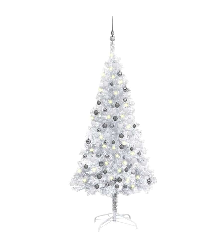 Questo bellissimo albero di Natale, realizzato in PET, ? molto realistico nella forma e nell'aspetto. I piedini in acciaio ne aumentano la stabilit?. L'albero di Natale pu? essere riutilizzato ogni anno, il che lo rende una scelta molto economica rispetto ad un albero vero. Dotato di luci a LED ad alta efficienza energetica, si illumina magnificamente e crea un'accogliente atmosfera natalizia. Decorato con il bel puntale e le palline, questo albero di Natale attirer? l'attenzione nella vostra casa.