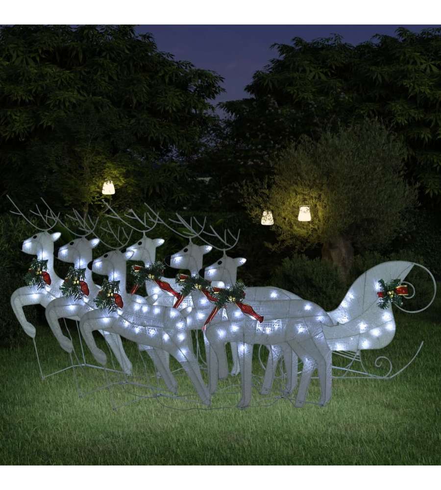 Create una bellissima esposizione nel vostro giardino durante le festività natalizie con queste adorabili decorazioni luminose con le renne e la slitta di Natale.