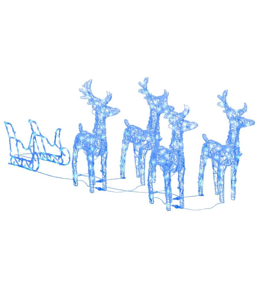 Decorate il vostro giardino o la vostra casa con questa collezione unica. Questa decorazione natalizia, costituita da 4 renne e una slitta, abbinata a luci blu fa risaltare la vera bellezza della stagione!