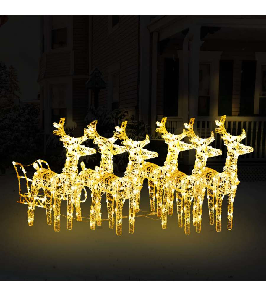 Create una bellissima esposizione nel vostro giardino durante le festivit? natalizie con queste adorabili decorazioni luminose con le renne e la slitta di Natale.