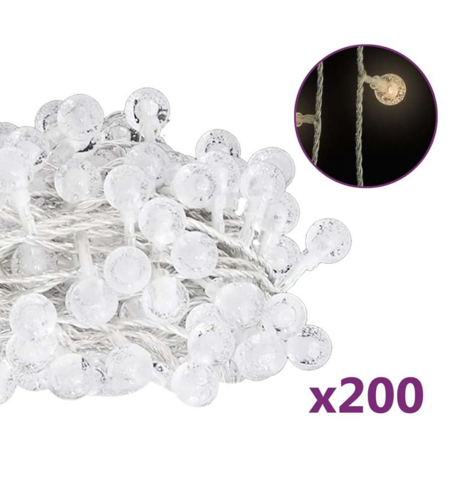 Colore luce: Bianco caldo Materiale: Plastica Lunghezza totale: 20 m Tensione: DC 5 V Potenza: 5 W Numero di LED: 200 Spazio tra ogni luce LED: 10 cm Include un cavo di prolunga da 3 m Con lampadine di plastica resistentiAltro 7: