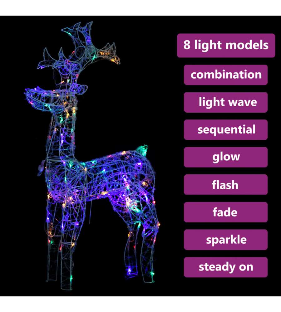 Questa decorazione a forma di renna ? realizzata in acrilico, il che la rende resistente alle intemperie durante le festivit? natalizie. ? pre-illuminata con 90 luci a LED, che sono a risparmio energetico, resistenti e durevoli.