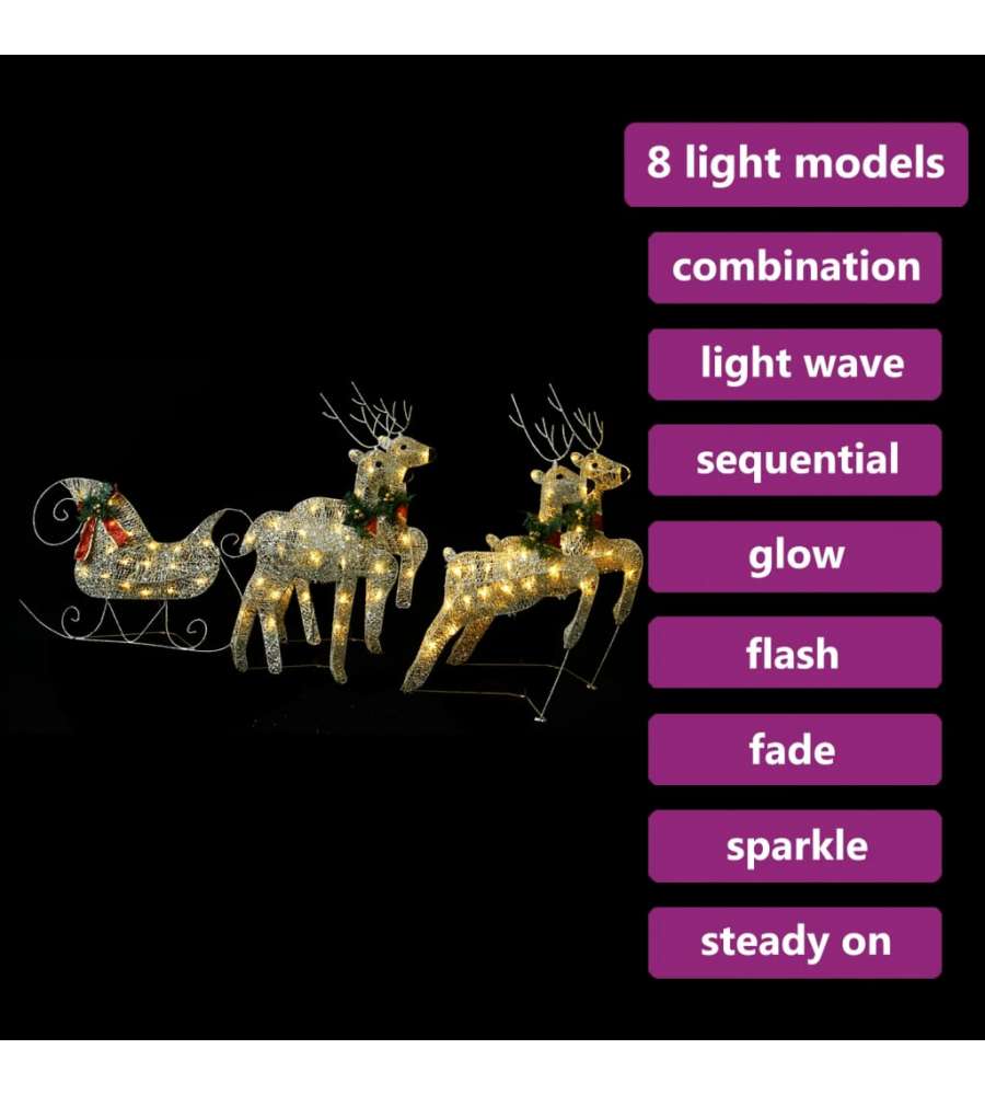 Decorate il vostro giardino con questa collezione unica di decorazioni natalizie per esterni. Questa decorazione con renne e slitta abbinata a luci bianco caldo fa risaltare la vera bellezza della stagione!