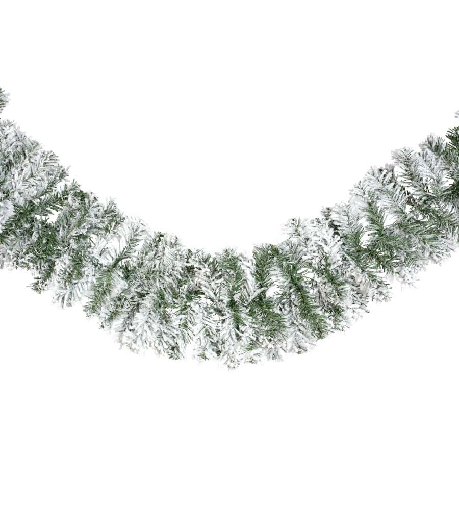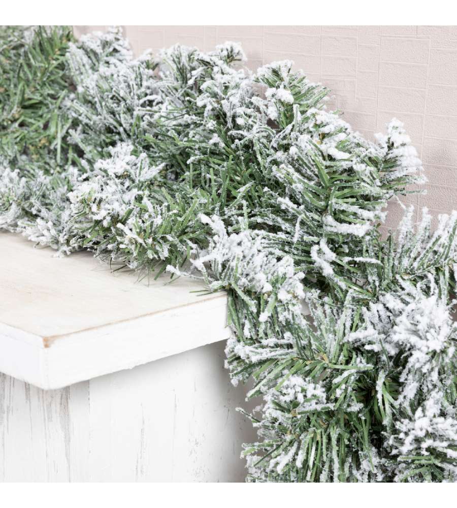 Descrizione: Ghirlanda boa con realistico effetto innevato. Si compone di 180 rami, lunghezza 2,7 m e diametro 20 cm.