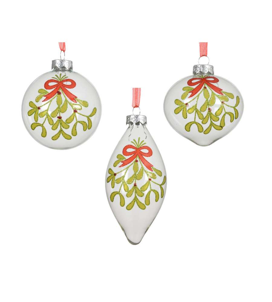 Descrizione: Pallina di vetro trasparente da 8 cm con dettagli di foglie e glitter rossi, perfetta per decorare il tuo albero di Natale con eleganza e stile. Include nastro di organza per appenderla. Tre diverse forme, varianti assortite.