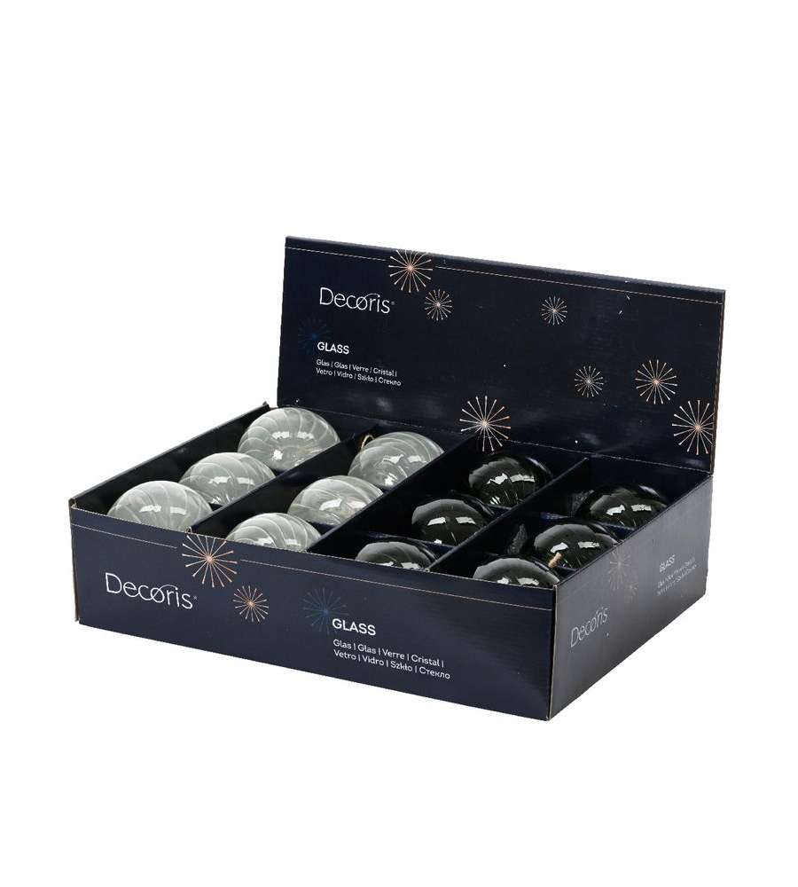 Le sfere di Natale Decoris rappresentano un'aggiunta perfetta per il tuo albero delle feste. Grazie al loro design elegante e alle finiture disponibili, queste sfere in vetro trasparente sono ideali per chi desidera creare un'atmosfera natalizia raffinata. Sia che tu scelga la variante verde o bianca, ogni sfera è dotata di un cappuccio a uncino e di un nastrino in juta, rendendole facili da appendere. Aggiungi un tocco di classe e stile al tuo arredamento festivo con queste splendide sfere.
