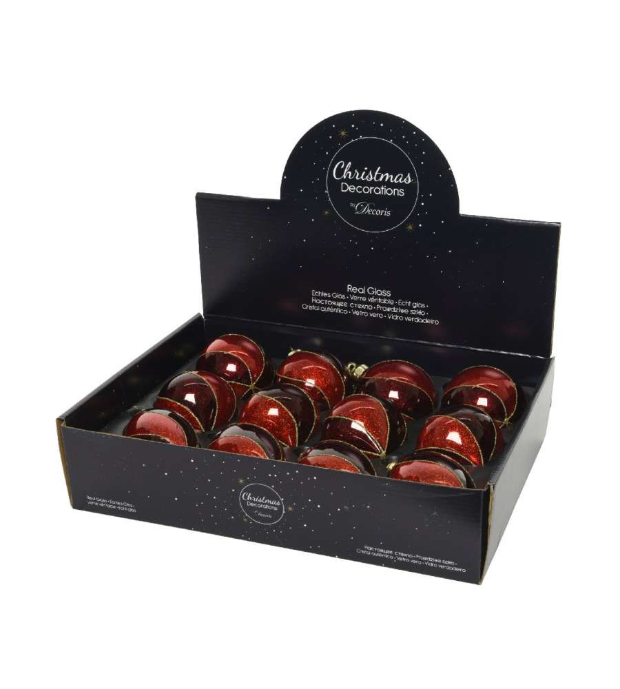 Le sfere natalizie in vetro rosso Luxury di Decoris rappresentano un'ottima scelta per chi desidera decorare il proprio albero con eleganza e stile. Il loro design raffinato, arricchito da glitter e un delicato fiocco dorato, non solo attira l'attenzione, ma conferisce anche un'atmosfera calorosa e festosa. Grazie alla loro versatilità, puoi utilizzarle per abbellire non solo l'albero di Natale, ma anche altre decorazioni della tua casa..