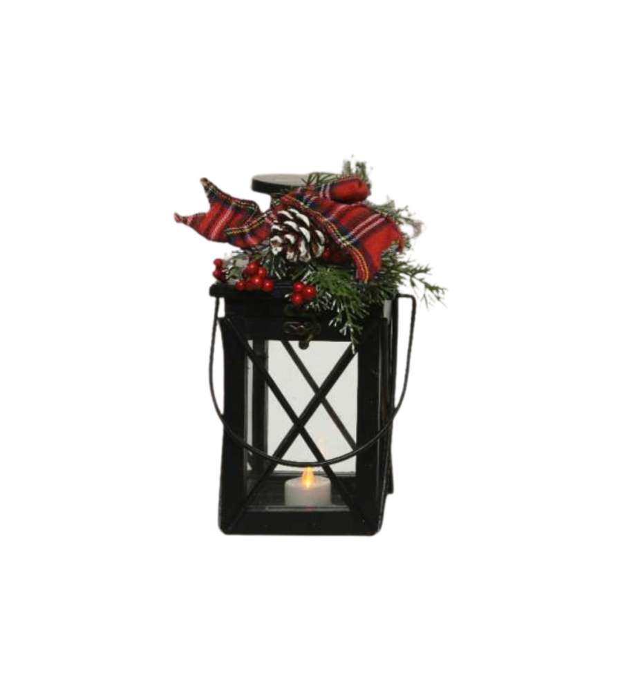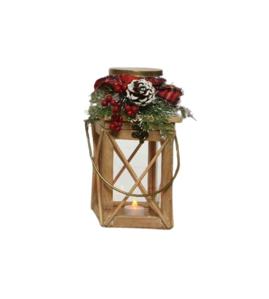 Lanterna decorativa natalizia in colori assortiti con manico. Include lucina LED. Dimensioni: 13x14x25 cm. Design festivo perfetto per abbellire gli ambienti durante le festività.Uso interno:
