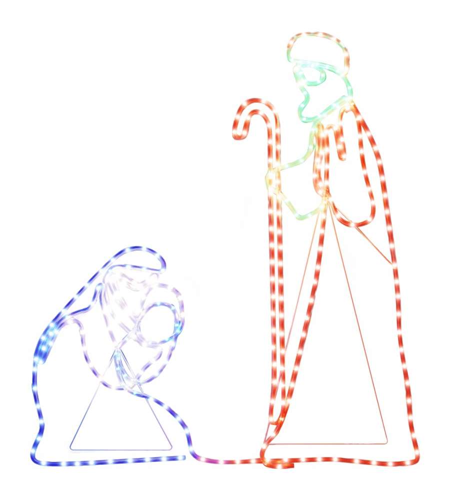 Colore LED: Multicolore Materiali: Acciaio, polivinilcloruro Dimensioni di Maria: 40 x 55 cm (L x A) Dimensioni di Giuseppe: 38 x 100 cm (L x A) Numero di LED: 264 Valutazione IP: IP44 Tensione: AC 220-240 V Potenza: 16 WAltro 6: