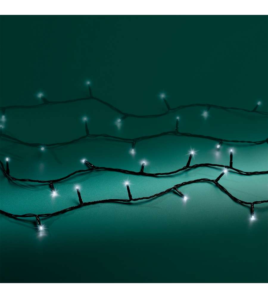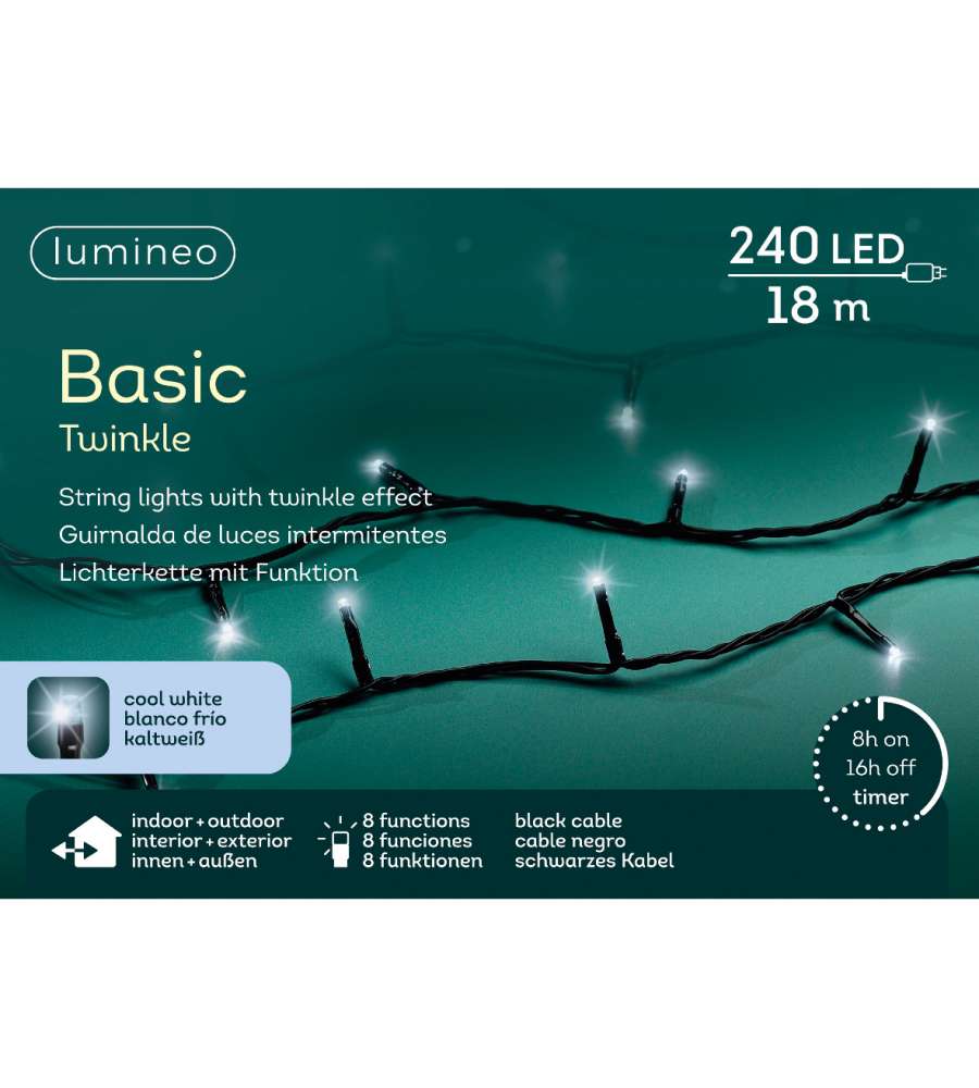 Descrizione: Luci LED natalizie Lumineo da 1800 cm, bianco freddo, con 240 LED e timer integrato. Ideali per decorare alberi e spazi esterni, offrono un effetto Twinkle per un'atmosfera magica.