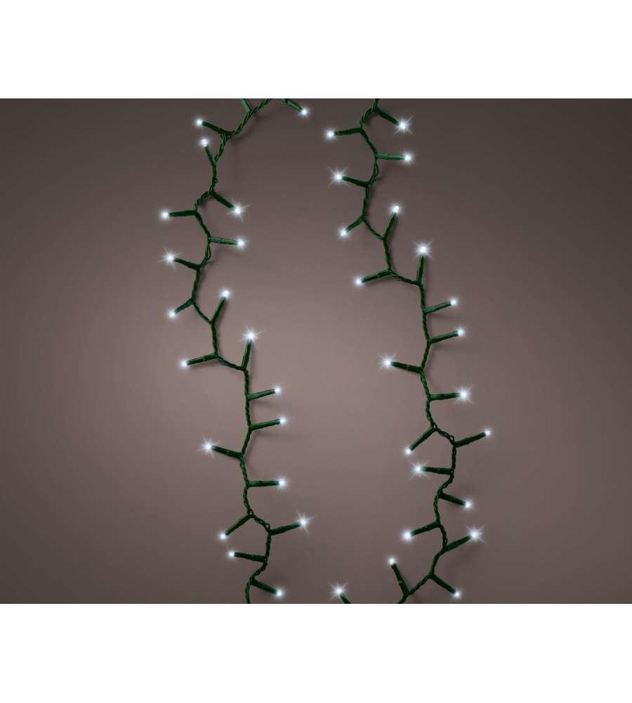 Descrizione: Luci LED Lumineo per albero di Natale, bianco freddo, 1100 cm. Effetto uniforme con 500 LED, 8 funzioni Twinkle, timer 8 ore, cavo verde. Ideali per esterni, creano un'atmosfera magica.