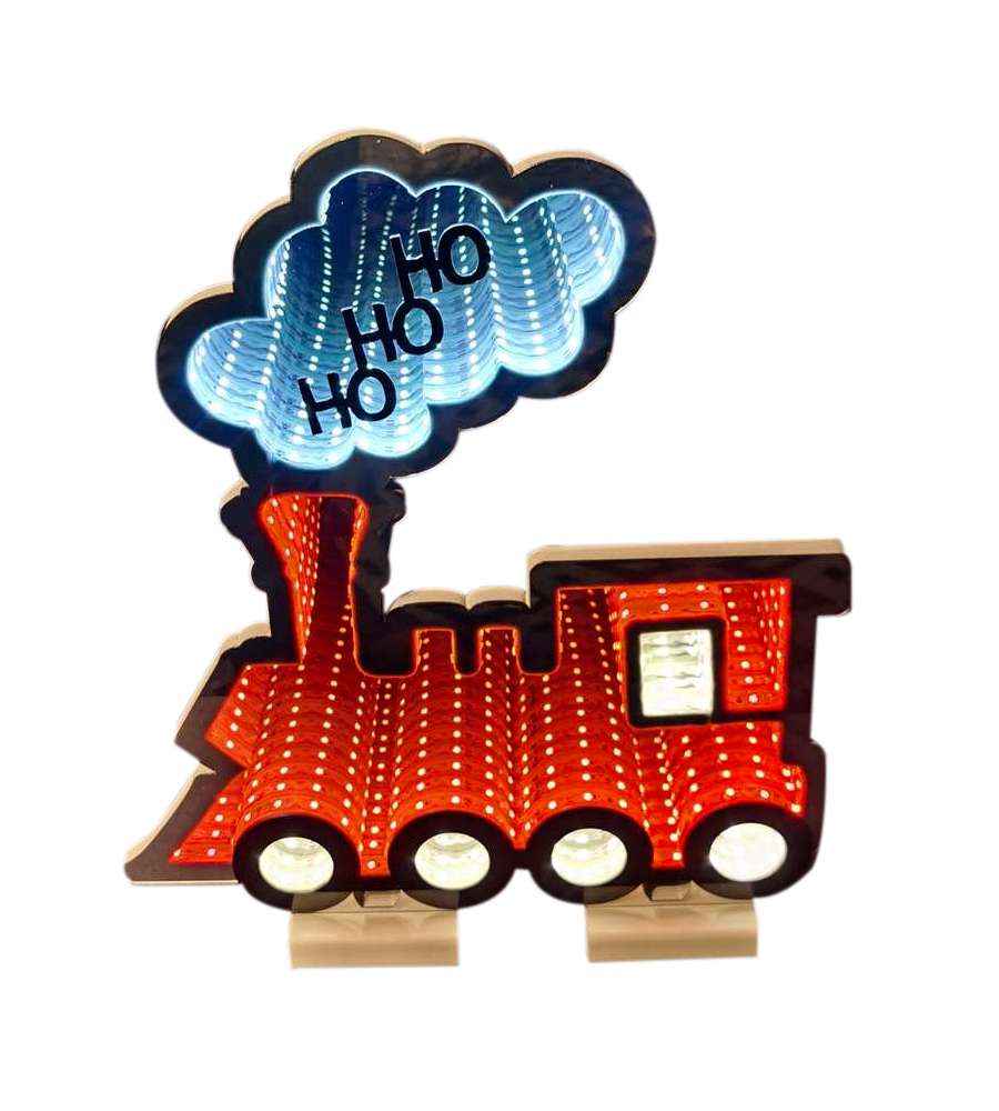 Descrizione: Trenino luminoso di 40 cm, perfetto per decorazioni natalizie. Crea un'atmosfera magica con luci LED bianche e rosse e effetto tunnel infinito. Ideale per interni ed esterni!