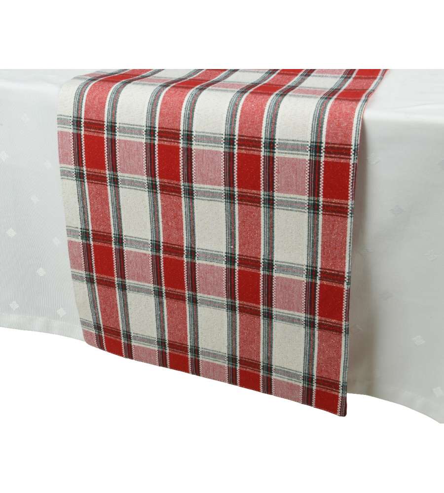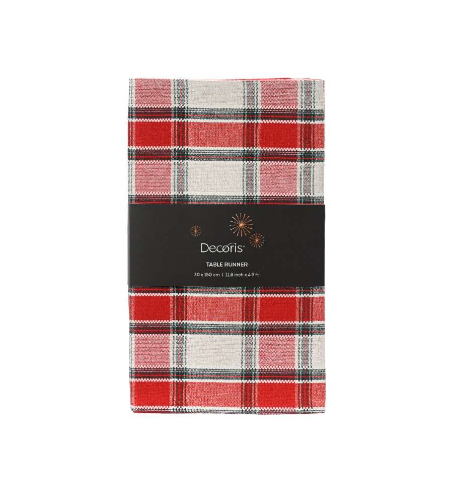 Runner da tavola Decoris in cotone, motivo tartan verde/rosso, dimensioni 150x30 cm. Perfetto per decorare la tavola durante le festività natalizie con eleganza e stile.