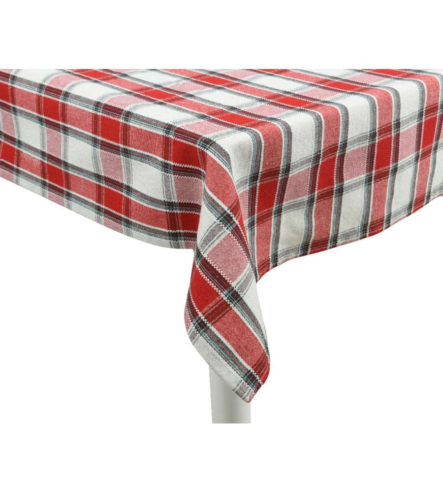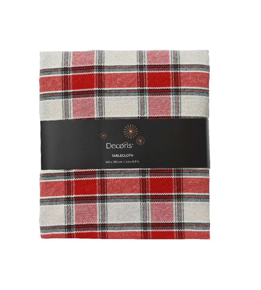 Tovaglia natalizia Decoris in cotone, verde e rossa, con motivo tartan. Misura 180x140 cm, ideale per decorare la tavola durante le feste con stile e calore.