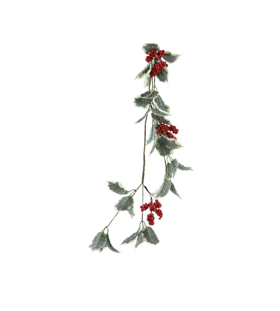 Ghirlanda Decoris verde/rossa 130x15 cm, decorata con bacche realistiche e glitter. Perfetta per decorazioni natalizie tradizionali e moderne. Realizzata in poliestere durevole.