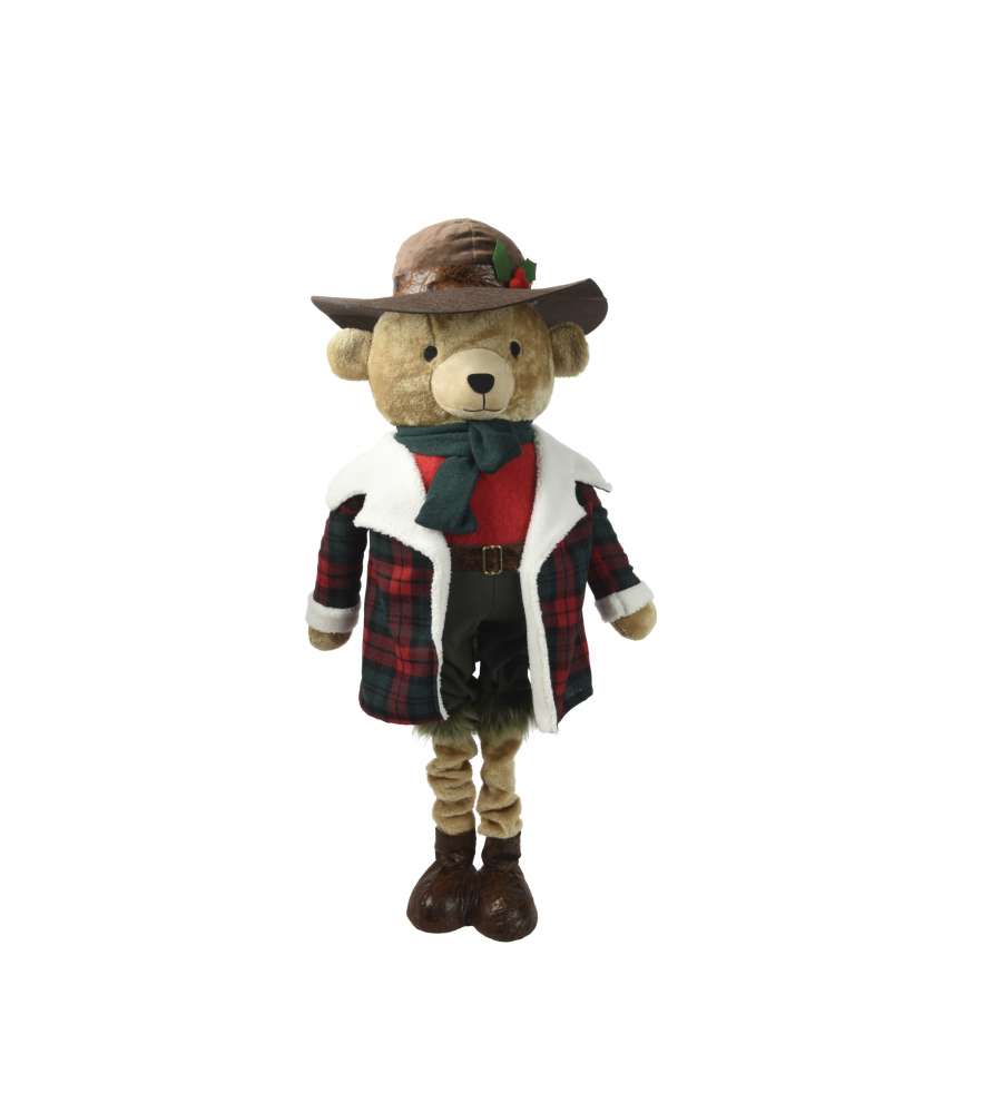 Decorazione natalizia a forma di orso, alta 117 cm, in poliestere rosso, fatta a mano. Perfetta per aggiungere un tocco festivo e accogliente alla tua casa durante le festività.