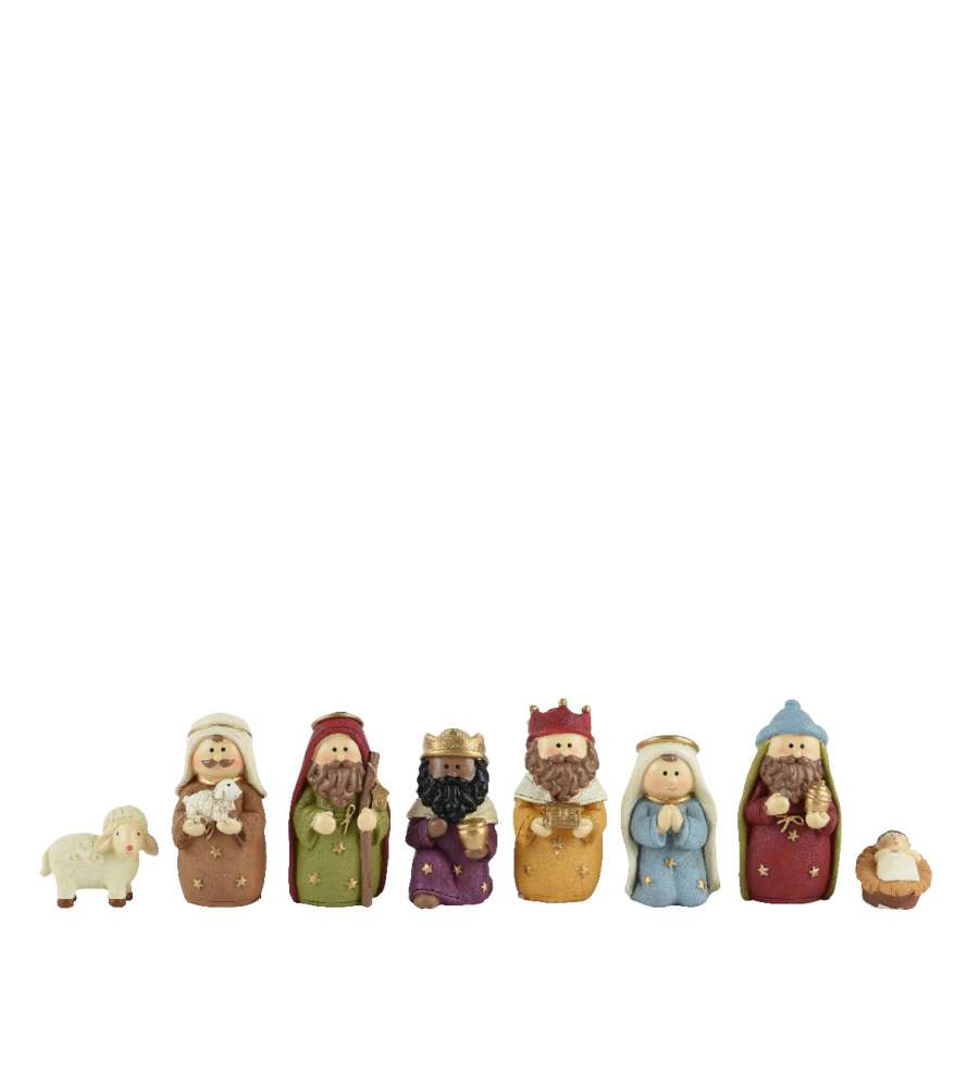 Presepe Decoris in poliresina dipinta a mano, 9,5 cm, con figure dettagliate. Perfetto per decorazioni natalizie, aggiunge un tocco tradizionale e festivo alla tua casa.