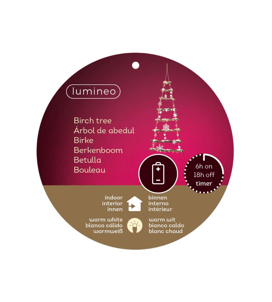 Descrizione: Scopri l'albero di Natale da parete in legno di betulla con 90 LED bianco-caldo, ideale per interni. Alimentato a batteria, misura 100 cm di altezza. Perfetto per un'atmosfera natalizia accogliente!