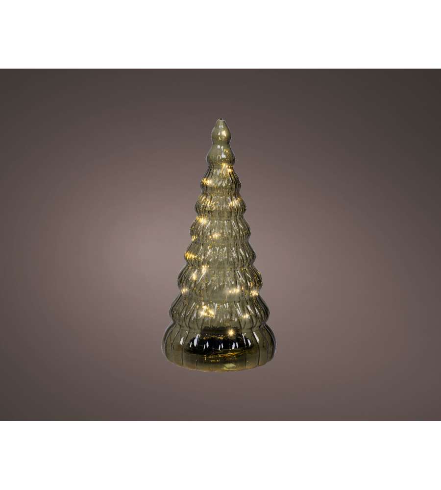 Lumineo LED Albero verde 30.5 cm: decorazione natalizia in vetro con 20 LED bianco caldo, alimentato a batterie, timer 6 ore, perfetto per creare un'atmosfera accogliente.