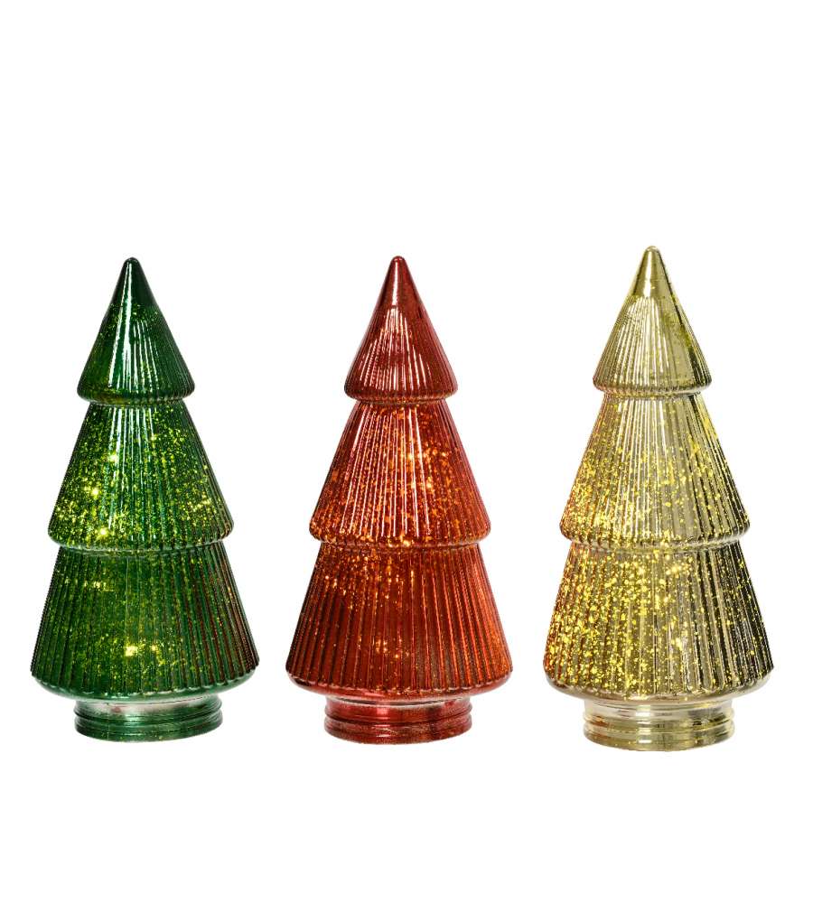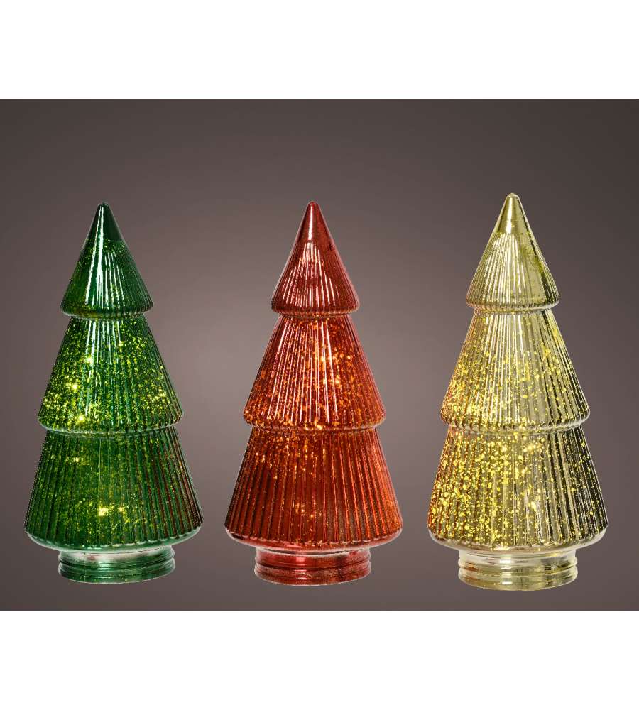 Albero luminoso in vetro argento antico con LED caldi, 23 cm, a batteria. Design elegante e compatto, perfetto per creare un'atmosfera natalizia accogliente e magica.
