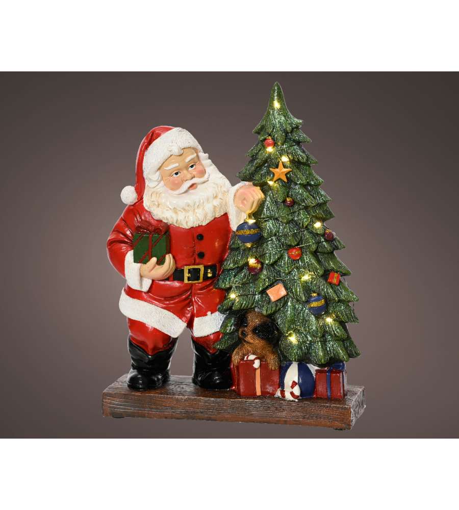 Babbo Natale decorativo 30 cm con 12 LED a luce calda, realizzato in poli-resina. Funziona con 2 batterie AAA, autonomia 48 ore, timer 6 ore. Perfetto per creare un'atmosfera natalizia accogliente.