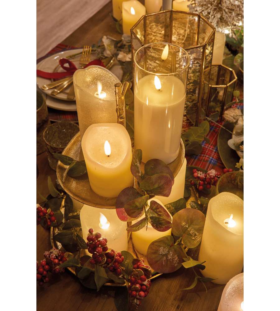 Descrizione: Candela LED bianca con effetto fiamma, ideale per decorazioni natalizie. Funziona con 2 batterie AA e ha un timer di 6 ore. Dimensioni 7,5 × 15 cm, crea un ambiente particolarmente suggestivo grazie alla sua luce bianca calda.