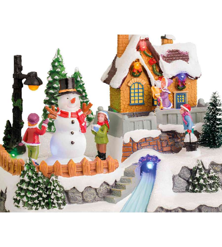Casa di Natale illuminata con LED multicolore, dimensioni 15x21x15,5 cm. Alimentata a batteria (3xAA incluse), perfetta per decorazioni natalizie interne. Crea un?atmosfera magica e accogliente. Varianti assortite disponibili.Uso interno: