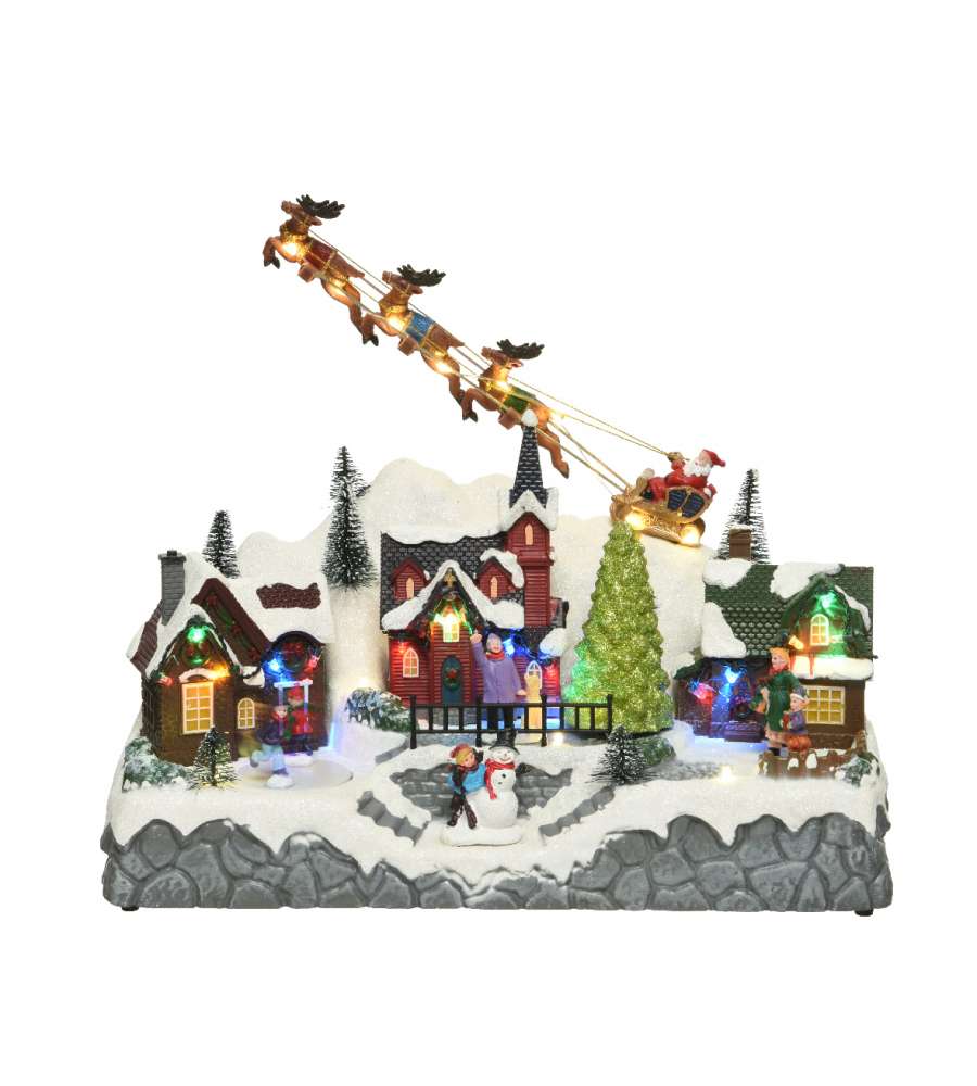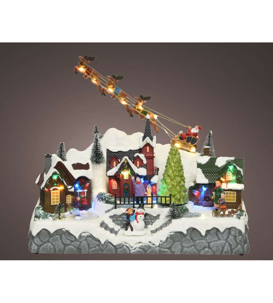 Descrizione: Casa di Natale illuminata con LED multicolori, perfetta per decorare la tua casa durante le feste. Realizzata in plastica dipinta a mano, misura 32x17x27,5 cm e crea un'atmosfera magica.