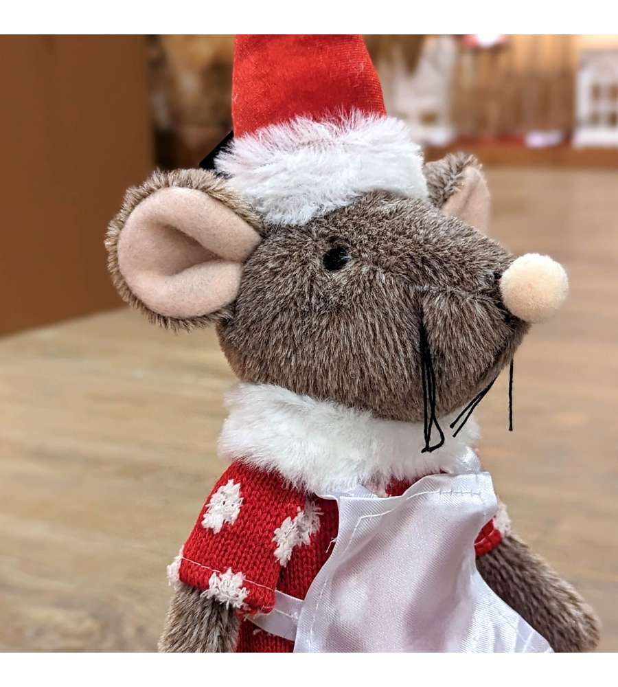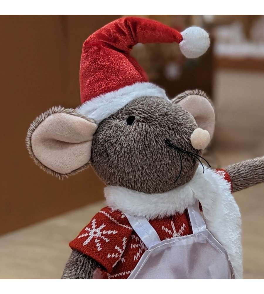 Descrizione: Aggiungi un tocco di magia al tuo Natale con il Topolino Natalizio con grembiule. Alto 45 cm, disponibile in variante maschio o femmina, è un elegante decoro in poliestere perfetto per ogni ambiente festivo.