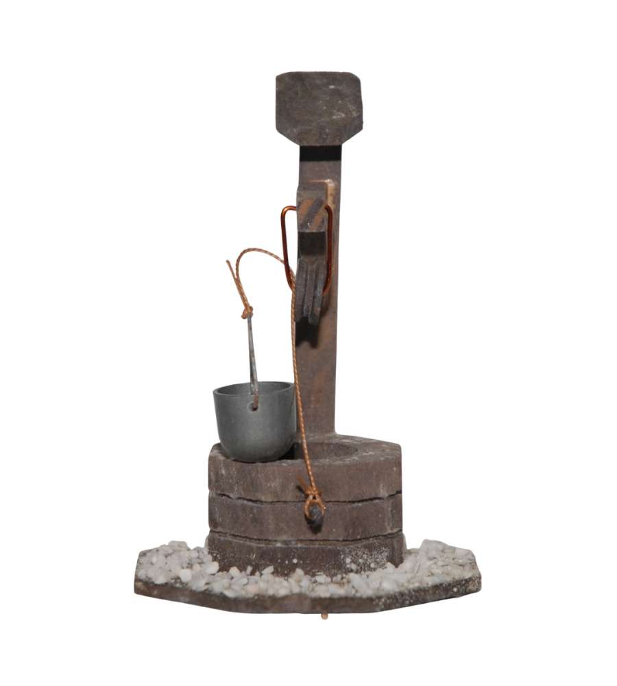 Pozzo in legno con carrucola, dimensioni 8 x 11 cm. Perfetto per arricchire l'ambientazione del tuo presepe, creando una suggestiva atmosfera natalizia. Ideale per decorare e dare vita al paesaggio natalizio.