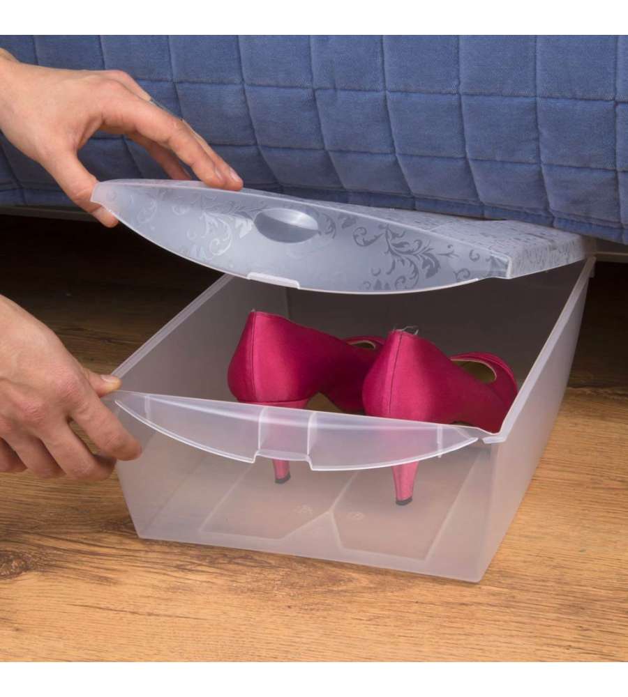 Contenitore per scarpe in plastica rettangolare, coperchio sollevabile, impilabile e leggero (0,79 lbs). Ideale per organizzare spazi. Non resistente all'acqua, confezione da 1 unità. Design professionale, pratico e funzionale.Indicato per: