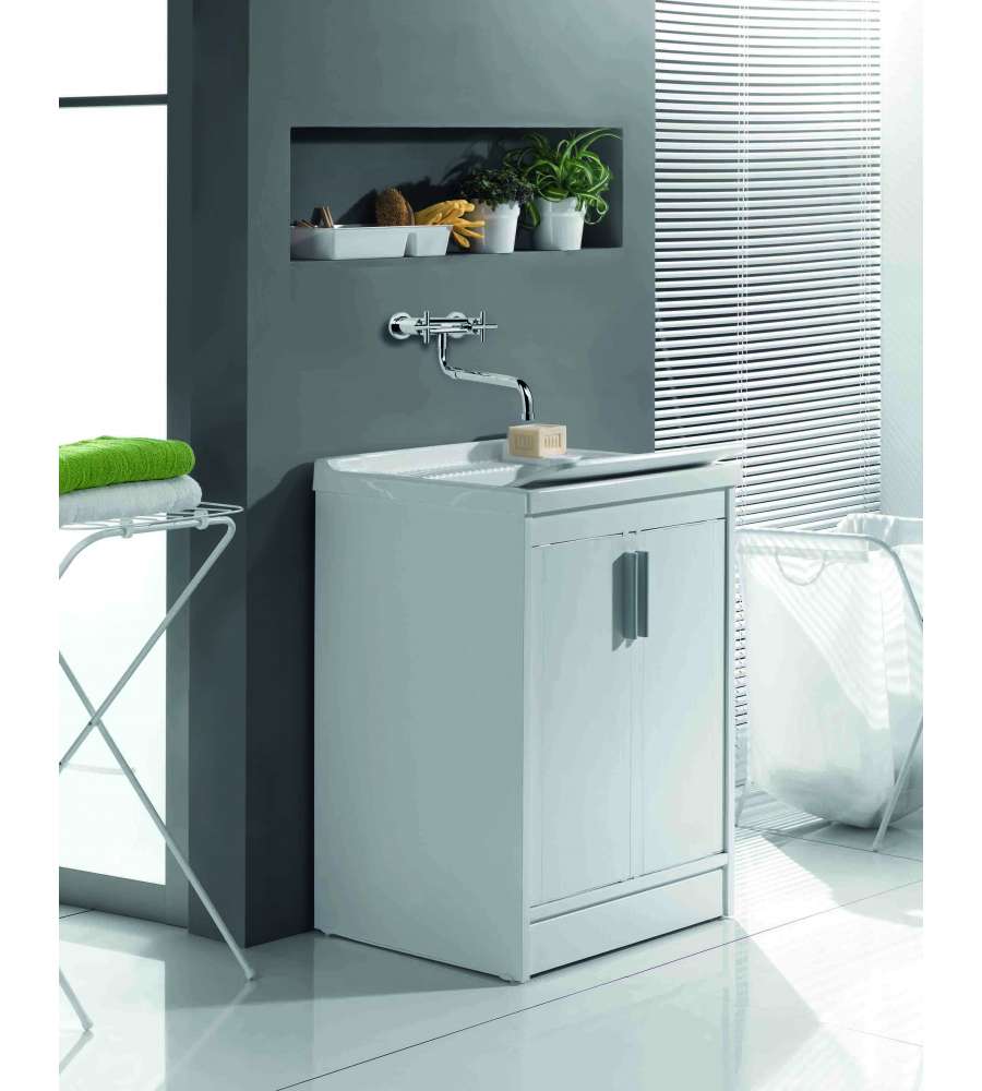 Descrizione: Il mobile lavatoio in resina 60x50x86 H cm è un'ottima soluzione per chi cerca un prodotto pratico e funzionale. Realizzato in ABS metacrilato, questo mobile è dotato di 2 ante battenti e una vasca da 32 litri, ideale per l'uso sia in interni che in esterni.
